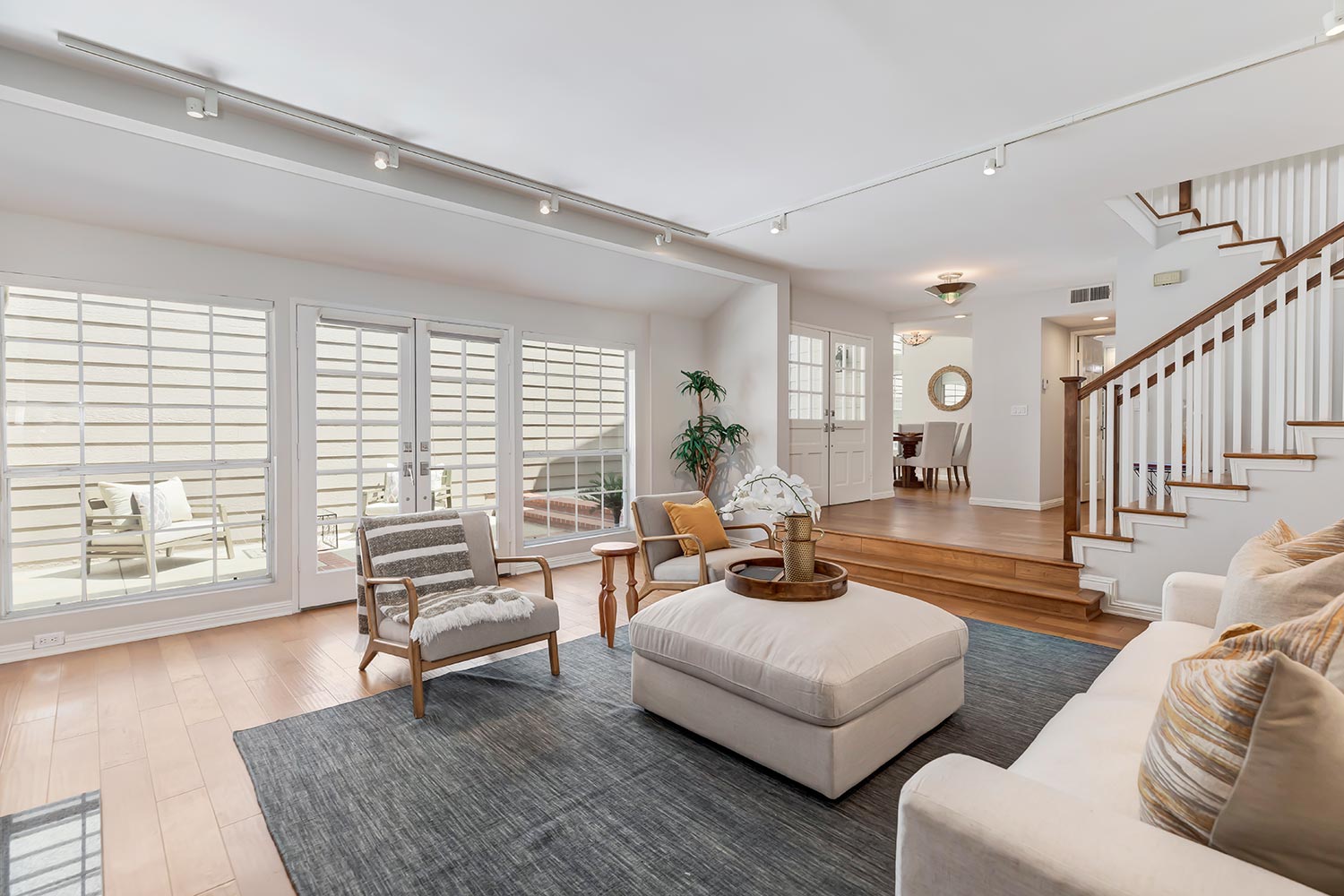 Sophisticated patio home you've been waiting for in the desirable gated Villa Marina East Phase IV ! Spacious private entry patio with French doors off the living room provides excellent entertaining space! High ceilings, custom lighting, inviting fireplace framed by built-ins, hardwood floors and French doors with custom window coverings highlight the living room area. Formal dining room has buffet counter and glassware display cabinets. Stunning remodeled gourmet's kitchen has bright white cabinets, designer counters and backsplash, center island w breakfast bar, a kitchen secretary, amazing storage, recessed and under-counter lighting. Upstairs there are two bedroom suites: The master boasts a beautiful fireplace, built-ins, a seating area, huge walk-in closet and a luscious master bathroom with soaking tub, separate shower, double sinks, and a skylight. The sunny second bedroom has additional custom cabinets and private, full bath. A special feature of this 2216 sq ft floorplan is the open loft area office and seating area, which can easily be converted to a nursery/small bedroom, or exercise area. This interior location is convenient to the tennis courts and the beautiful pool area. These patio homes are freeway-close, and restaurants, shopping, boating and all that Marina del Rey has to offer are just minutes away. A very special property!
